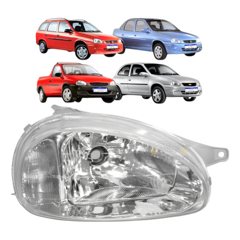 Farol Chevrolet Corsa Classic Wind Wagon Pickup (Carcaça Cinza, Lente lisa e Cristal)