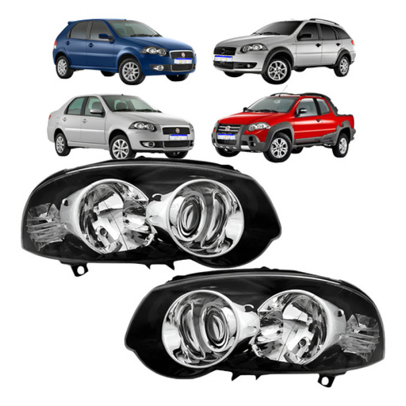 Farol Fiat Palio / Palio Weekend / Strada / Siena ( Mascara Negra / Canhão Cromado )