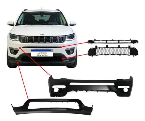 JEEP COMPASS - KIT PARACHOQUE DIANTEIRO COM TAMPA REBOQUE + SPOILER DO PARACHOQUE + GRADE INFERIOR + GRADE SUPERIOR